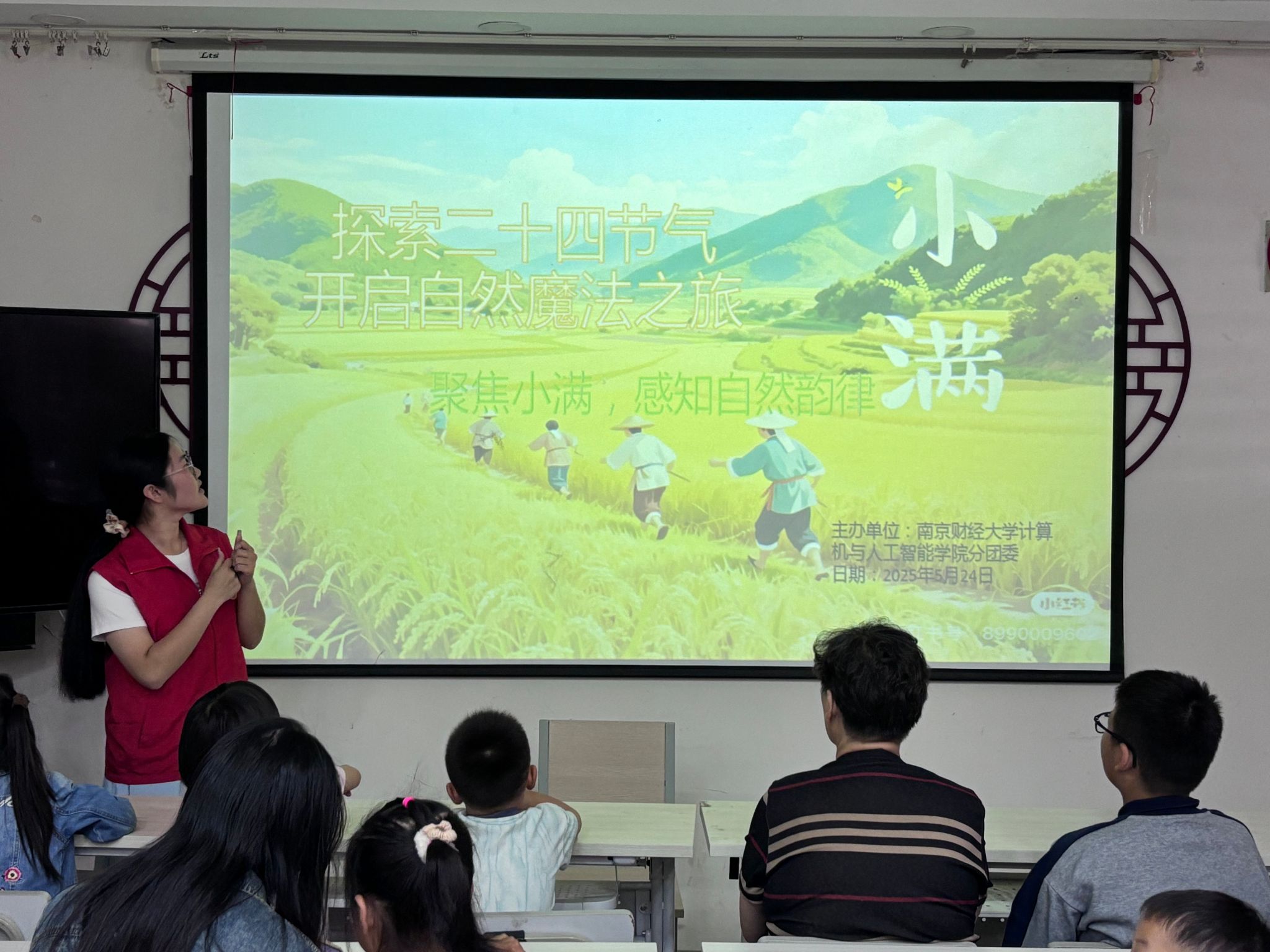 2025年5月24日,春末夏初,万物初盈。南京财经大学计算机与人工智能学院于小满时节,在社区举办了一场名为“探索二十四节气,开启自然魔法之旅——聚焦小满,感知自然韵律”的文化志愿活动。这场以童声为引、以自然为卷的节气盛宴,不仅让数十名社区孩童触摸到传统文化的温度,更在欢声笑语中织就了一幅“天时地利人合”的动人图景。