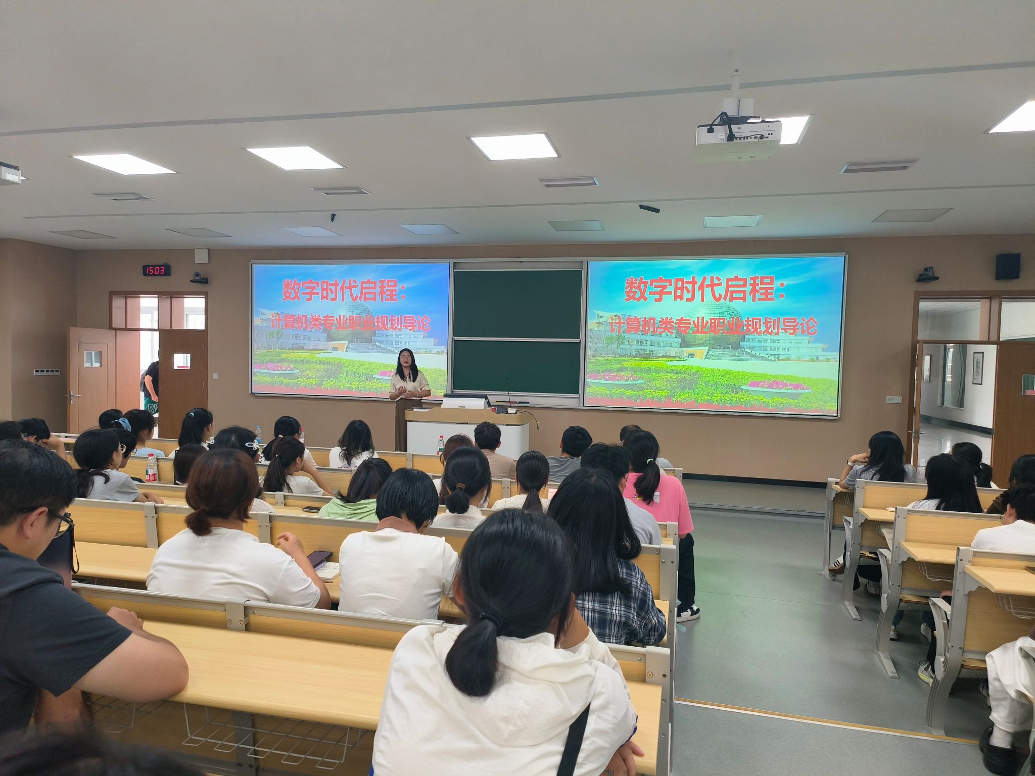 9月17日下午,计算机与人工智能学院邀请江苏源本科技集团大学生职业规划中心项目总监、EDP人才输送中心主任张晨程,为2025级新生精心准备了一场题为《数字时代启程:计算机类职业生涯规划》的专题讲座,旨在帮助新生明确大学四年的学习目标与发展路径,为未来的职业生涯奠定坚实基础。