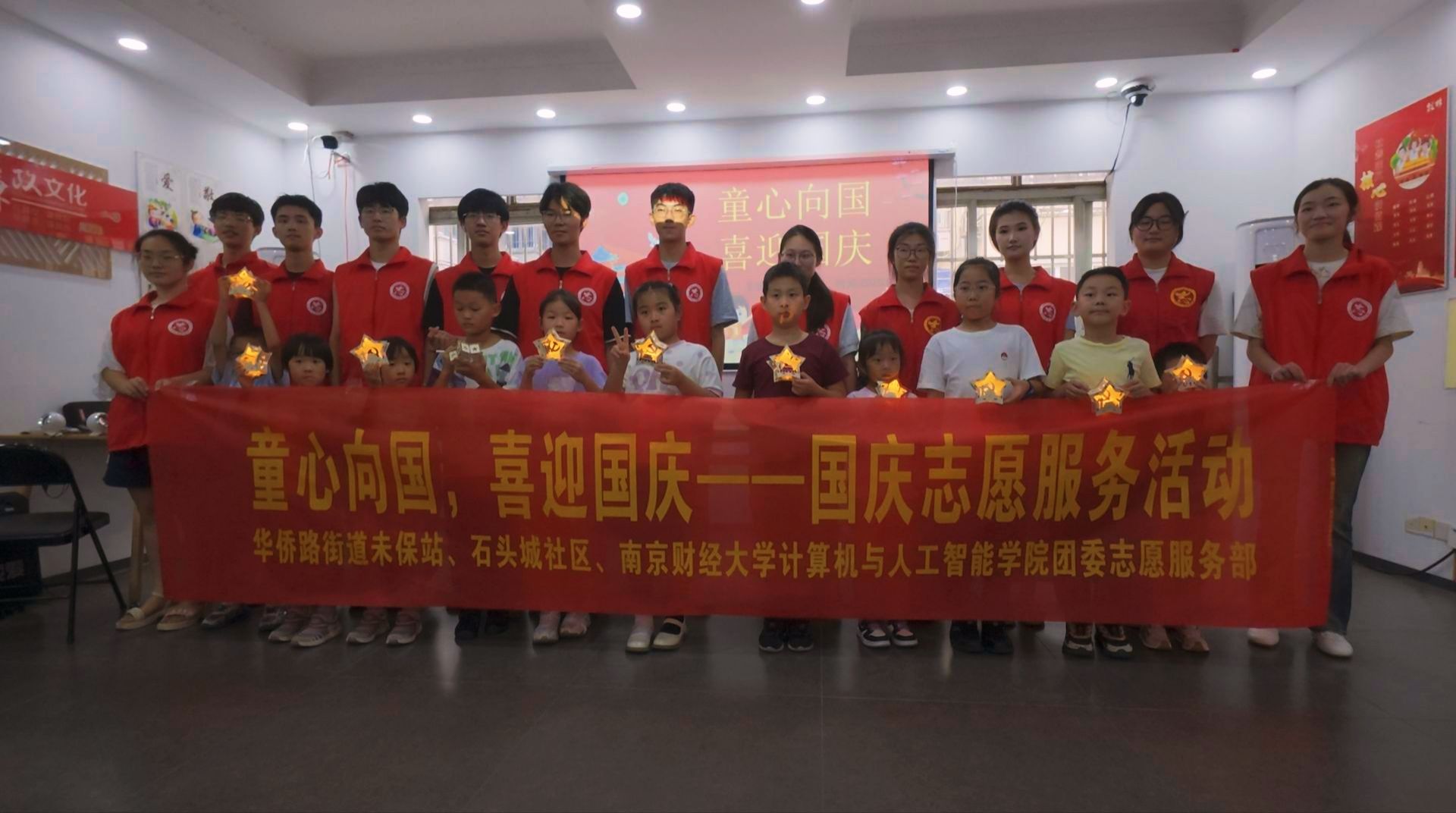 2025年9月27日,秋意初染金陵,暑气渐退。计算机与人工智能学院走进石头城社区,举办了一场以“童心向国·喜迎国庆”为主题的爱国主义教育实践活动。活动形式新颖、内容生动,旨在通过互动体验激发孩子们的爱国情怀,让“爱我中华”的种子在童心中生根发芽。