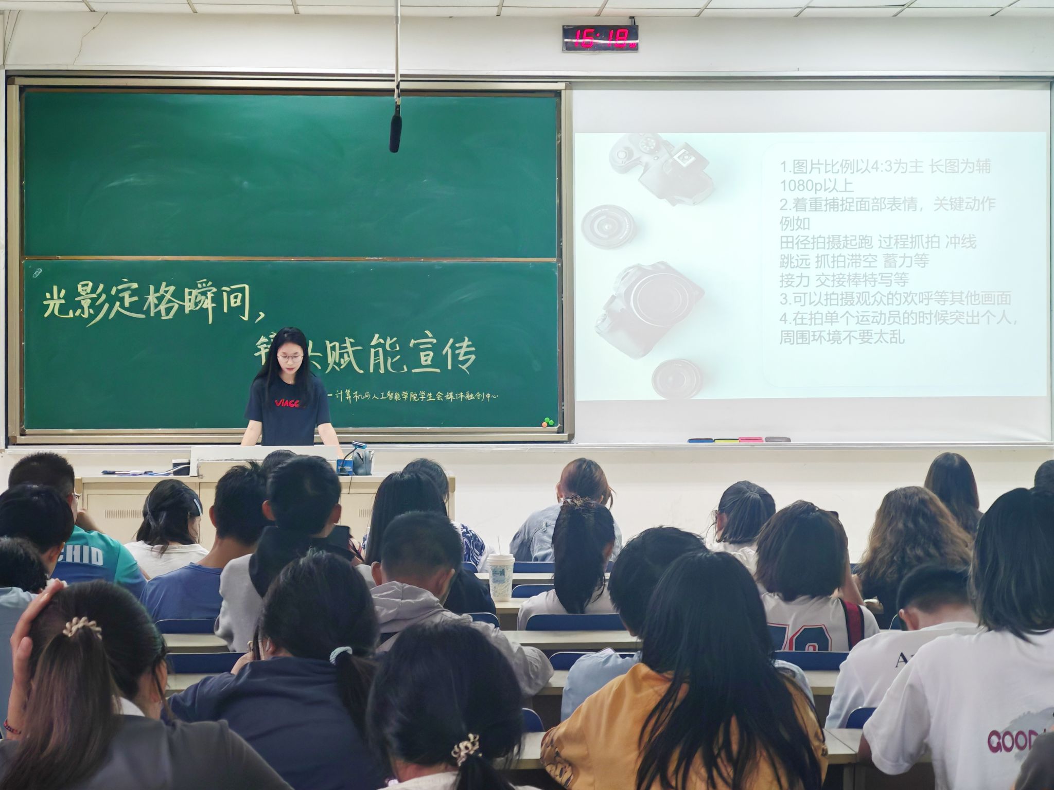 活动最后,主持人对本次培训进行总结,鼓励大家将所学知识灵活运用于实践之中,既要高质量完成运动会的宣传任务,也要善于用镜头捕捉校园生活中的美好瞬间,真正做到“眼中有光,心中有爱,镜头里有故事”,以影像为媒介,为学院的宣传工作注入更多活力与温度。