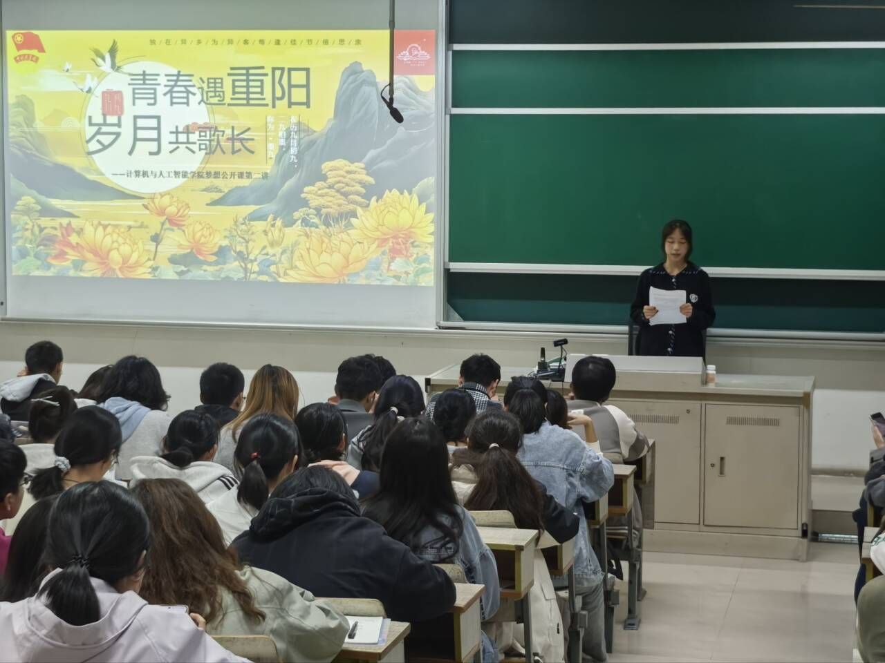 金秋送爽,丹桂飘香。为弘扬中华民族尊老敬老的传统美德,引导青年学子传承优秀传统文化,2025年10月23日,计算机与人工智能学院在博远楼106教室成功举办了“青春遇重阳,岁月共歌长”为主题的第二期梦想公开课。本次活动由计算机与人工智能学院团委组织部策划,吸引众多学子积极参与。