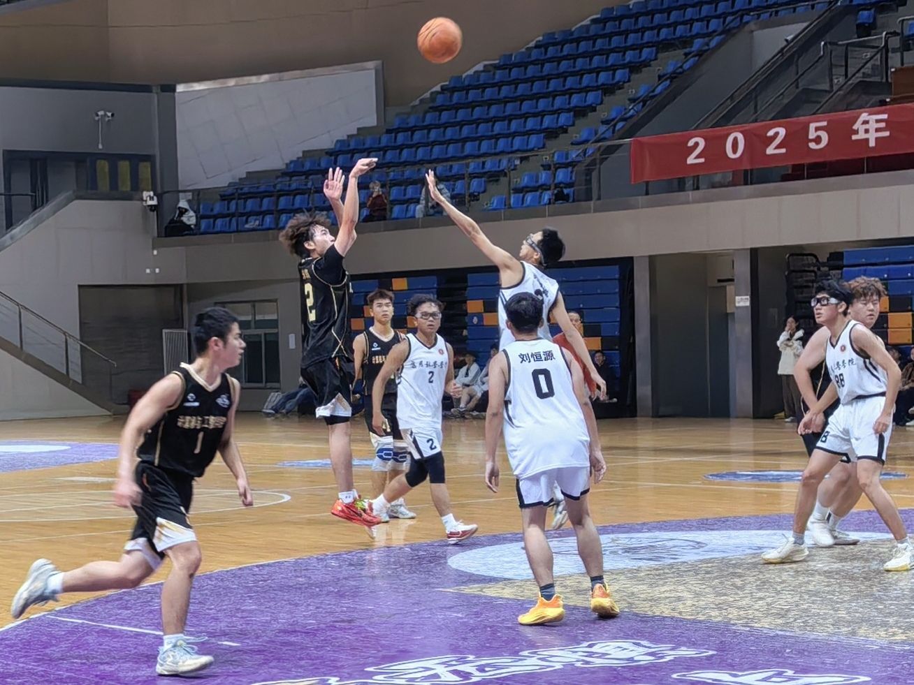 随着裁判一声哨响,总决赛正式拉开帷幕。身着黑色队服的计算机与人工智能学院的队员们精神抖擞、斗志昂扬,一开场便展现出强劲的实力。队员们配合默契始终牢牢掌控场上节奏,防守端严密布防,多次成功抢断对手传球,进攻端则火力全开,内外线结合,不断扩大领先优势。