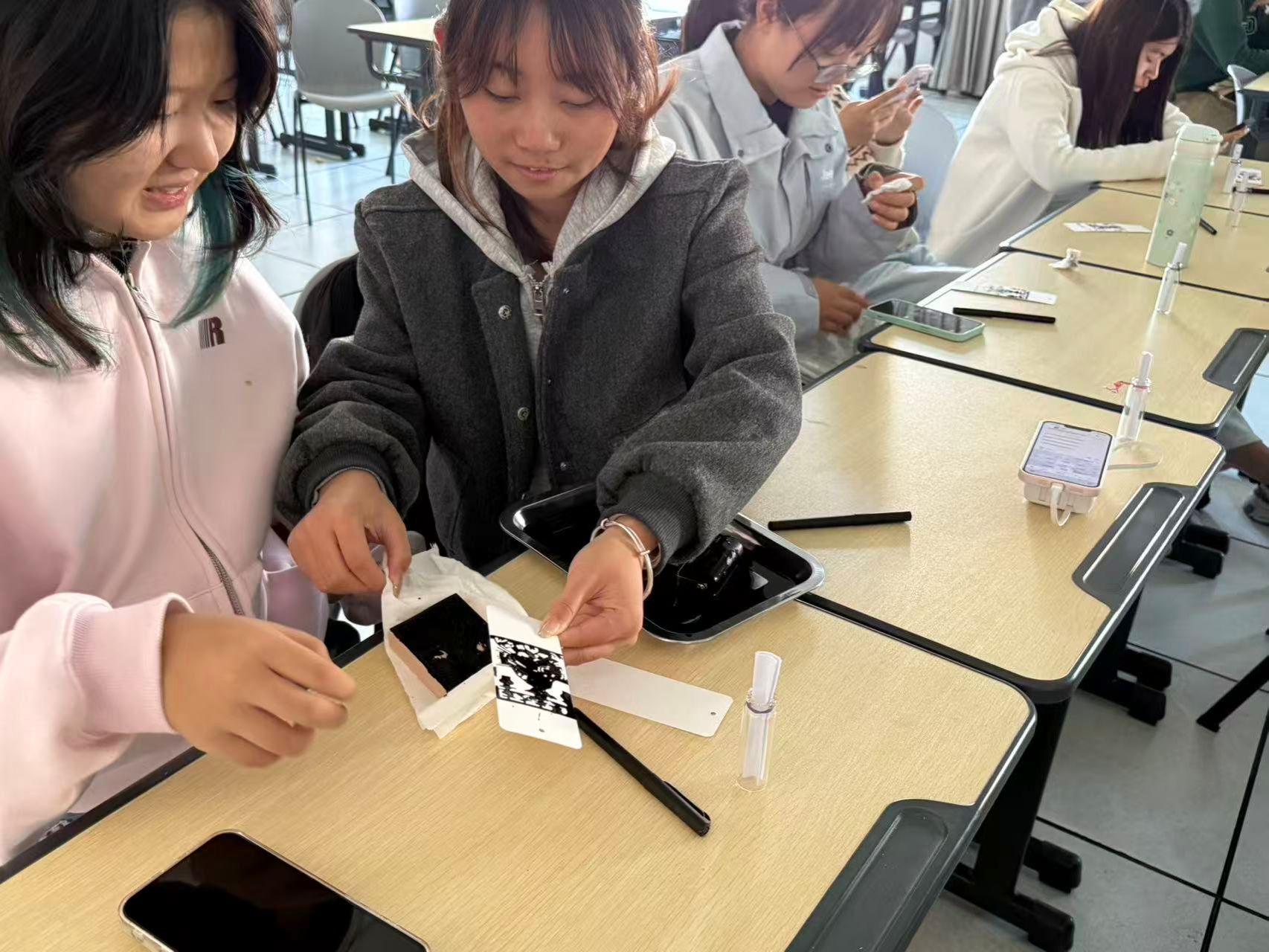 在“拓印书签”环节,同学们亲手体验了古老的非遗拓印技艺。他们小心翼翼地将精美的图案与文字定格于一枚枚小巧的书签之上。这不仅锻炼了大家的动手能力,更在潜移默化中增强了对传统文化的认同感与自豪感。